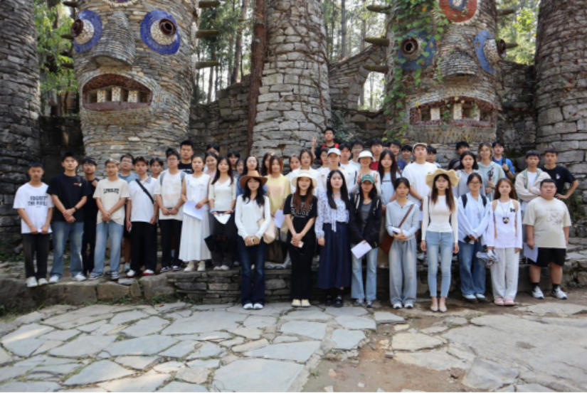 夜郎谷景区作为贵州省知名的文化生态型旅游景区,以独具特色的石雕艺术、民族文化景观及自然生态环境而闻名。近年来,景区通过融入社交媒体传播与“网红打卡”元素,吸引了大量游客,成为贵州文旅融合与乡村产业创新的重要案例。实践当天,员工在指导教师带领下,参观了景区主要景点、了解了景区建设历程、运营模式及农文旅融合机制。通过现场考察,同学们直观感受到乡村旅游发展在带动地方经济、促进农民增收及传播地方文化中的重要作用。