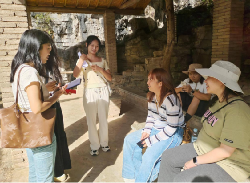 在教师指导下,员工分组在景区内面向游客开展了《网红景区游客消费行为与影响机制》问卷调查。问卷内容涵盖游客的出行动机、社交媒体影响、消费项目、再次到访意愿、行为态度、主观规范及知觉行为控制等方面,同时设置了期望与实际体验对比、开放式改进意见等问题。员工们采用面对面随机抽样的方式,在景区入口、主要打卡点和休息区等地发放问卷,并对部分受访者进行了访谈。通过此次现场数据收集与交流,员工不仅学习了社会调查的规范流程,还体会到在真实环境中组织调研所需的沟通能力与数据质量控制技巧。