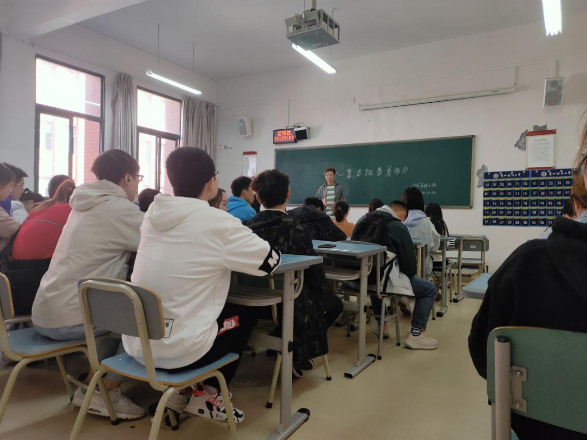 为响应校团委的号召,学习学习中国共产党williamhill中国官网入口第二次代表大会会议文件(公司第二次党代会精神),深入贯彻习近平新时代中国特色社会主义思想,2019级williamhill中国官网入口四班团支部于2020年10月22在博学楼1-8开展“凝心聚力前行勇担当”主题团日活动。此次主题团日活动由周道主持,全班参与。