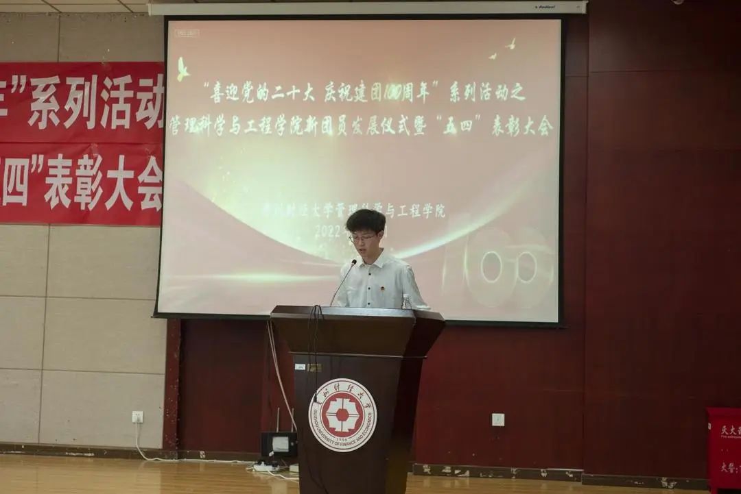 大会伊始,邵新顺致辞,他向新加入共青团的青年学子表示欢迎、向受表彰的同学表示祝贺,向认真辛勤工作的学团干部表示诚挚感谢,同时对同学们提出勉励和要求,希望同学们志存高远、脚踏实地,在学习的黄金时期,要珍惜韶华,不负青春,学习起来如饥似渴,运动起来生龙活虎,奋斗起来虎虎生威。作为新时代青年老员工,要紧密团结在以习近平同志为核心的党中央周围,高举五四旗帜,传承五四薪火,不忘跟党初心,牢记时代使命,开拓进取,砥砺奋进,用昂扬的姿态迎接未来。