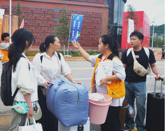 随着新生与家长陆续抵达,迎新工作高效运转。公司领导、老师现场值守,与新生亲切交流,关心报到进展与需求;员工干部和志愿者化身“校园向导”,活跃在校园各个角落,提供入校引导、行李搬运,手续办理、宿舍安置等系列引导服务,即便午后气温升高,汗水浸透衣衫,他们仍保持昂扬状态,以实际行动彰显“管工一家”的团结与温暖。