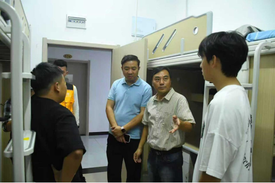 为进一步帮助新生适应校园集体生活,8月23日晚,公司领导班子与辅导员分组走访新生宿舍,开展“暖心宿舍行”活动,通过面对面交流传递公司的问候与关怀。