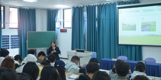 魏媛以习近平总书记给中国农业大学科技小院员工的重要回信精神为引领,围绕“扎深根、沐雨露、向阳生、赴基层”四大主题展开讲授,并结合沈浩同志扎根小岗村、推动乡村从“温饱”走向“富裕”的奋斗历程,黄文秀同志主动投身扶贫一线、为脱贫攻坚献出青春的感人事迹,以及谷文昌同志带领群众治沙造林、将东山从“荒岛”变为“宝岛”的实干精神,生动阐释了“基层是青年成长沃土”的深刻内涵,鼓励同学们要传承和发扬“自找苦吃”的精神,始终心系人民,主动沉下身段、深入基层、体察实情,在急难险重任务中锤炼担当、增长才干。