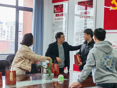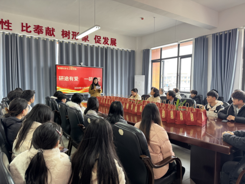 活动中,胡张林书记代表公司向所有为梦想努力的考研学子致以诚挚的问候,并在讲话中充分肯定了同学们的拼搏精神,叮嘱大家注意身体健康,保持良好心态,公司将全力做好后勤保障工作,为学子逐梦护航。傅璟则从备考技巧、心理调适等方面提供指导,叮嘱学子注重科学规划,提高备考效率,坚定信心、劳逸结合,以最佳状态迎接考试。随后,院领导为考研学习们送上公司精心准备的“加油包”。“加油包”内含院研究生会同学亲自制作的祝福卡片、棒棒糖(寓意考研学子“棒棒哒”)、咖啡(希望考研学习保持良好精神状态,一飞冲天)、励志钥匙扣(希望考研学子考场上能紧扣重点作答)、苹果和橙子(希望考研学子平稳上岸,一战成硕)。