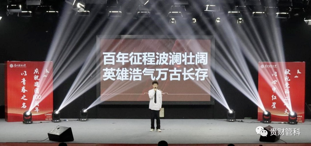 百年恰风华,世纪正青春,贵财青年将以自强不息、努力拼搏的精神勇立鸿鹄志,喜迎二十大、永远跟党走、奋进新征程,让理想信念在拼搏奋斗中灼灼升华,让青春人生在创新创造中熠熠生辉,握紧时代接力棒,为时代代言、为贵财代言,以拼搏之心激励前行,走好属于青年一代的长征路。