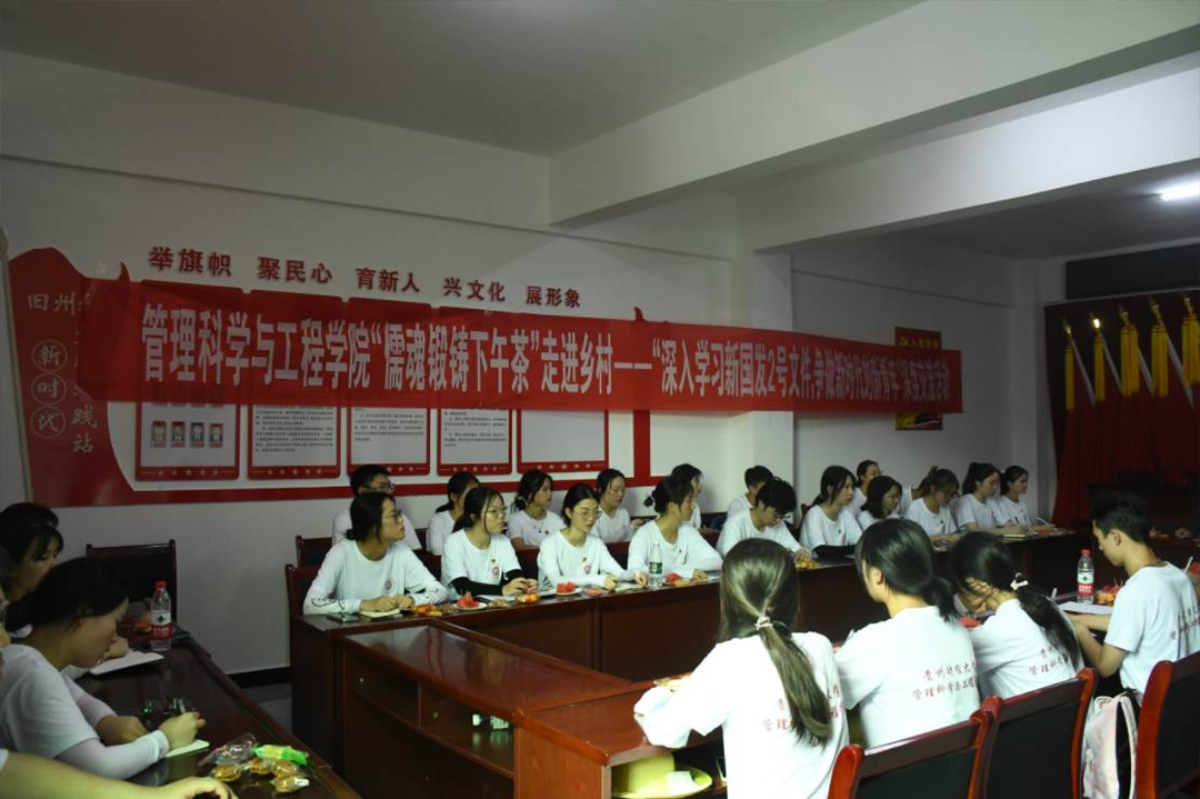 为深入学习新国发2号文件精神,引导和帮助广大青年学子上好与社会实践相结合的“大思政课”,在社会实践课堂中“受教育、长才干、做贡献”。7月5日,williamhill中国官网入口儒魂锻铸“下午茶”走进台江旧州村——与公司驻旧州村第一书记梁龙教授开展了主题为“深入学习新国发2号文件 争做新时代的新青年”的深度交流活动。此次活动特别邀请了旧州村支书、村主任张光明作为嘉宾,公司暑期“三下乡”社会实践队全体队员参与本次活动。