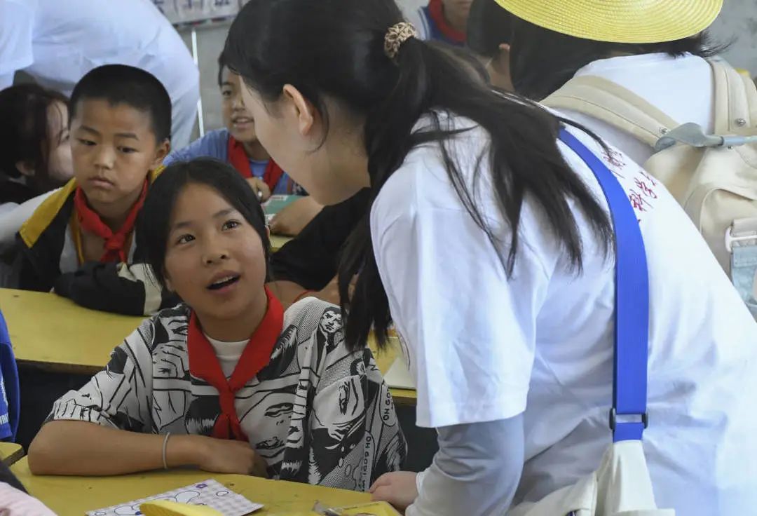 活动伊始,实践队员与同学们进行温馨交谈,亲切询问同学们的学习生活情况及心理健康状况,同学们纷纷向实践队员分享自己快乐及诉说自己目前的疑难问题,实践队员结合自身经历向同学们进行答疑解惑。此外,实践队员围绕思想引领、政治启蒙,通过讲故事、玩游戏等形式教育引导同学们积极培育和践行社会主义核心价值观,通过生动有趣的语言带领员工们积极学习,进一步激发同学们的自豪感、责任感和使命感,促进其正确的心理健康发展。