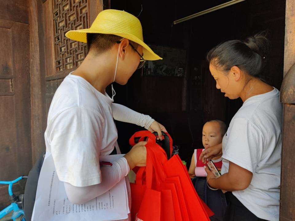 实践团深入街道以及农户家中,采取走访调查的方式进行乡风文明、乡村治理的相关调研。同时在走访过程中向他们宣讲我国的绿色发展战略以及实施垃圾分类和践行绿色低碳生活对乡村治理的重要意义。队员们在走访期间向村民们分发环保袋,讲述环保袋的实际用途和诸多优点,倡导村民践行低碳理念,共建整洁村容村貌,共创绿色家园。