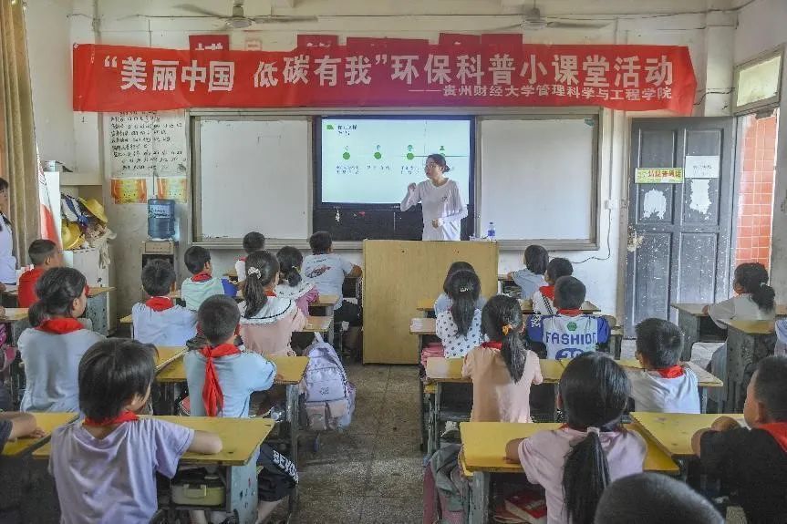 7月6日,williamhill中国官网入口暑期“千乡万村”环保科普行动科技志愿服务队于台江县施洞镇中心小学开展“美丽中国 低碳有我”环保科普小课堂活动。