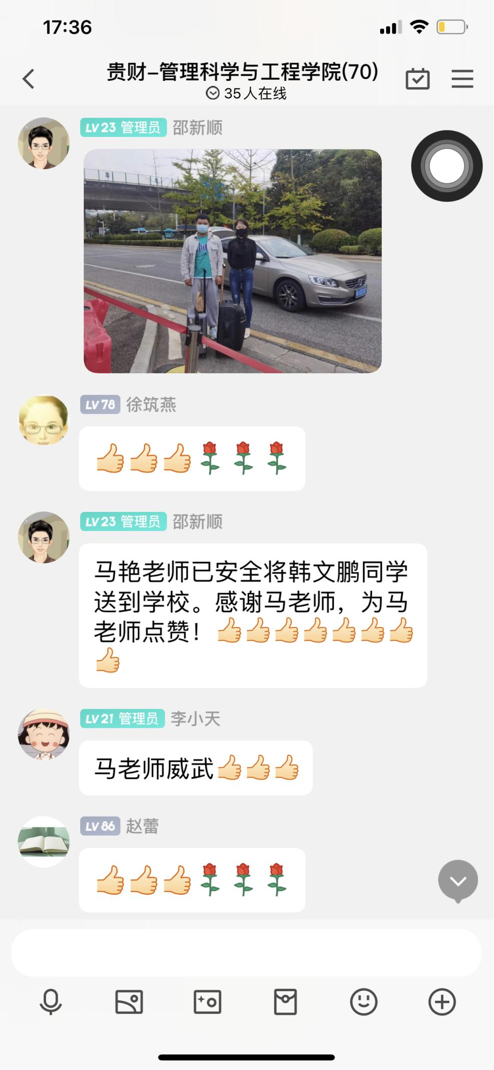 秋风十里,路途遥远,从观山湖到公司的路上,窗外都是明媚的风景。在公司领导老师的关心牵挂下,马艳老师将韩文鹏同学顺利地接送到校园,在外漂泊一月有余的管科学子,终于回到了管科公司温暖的怀抱。