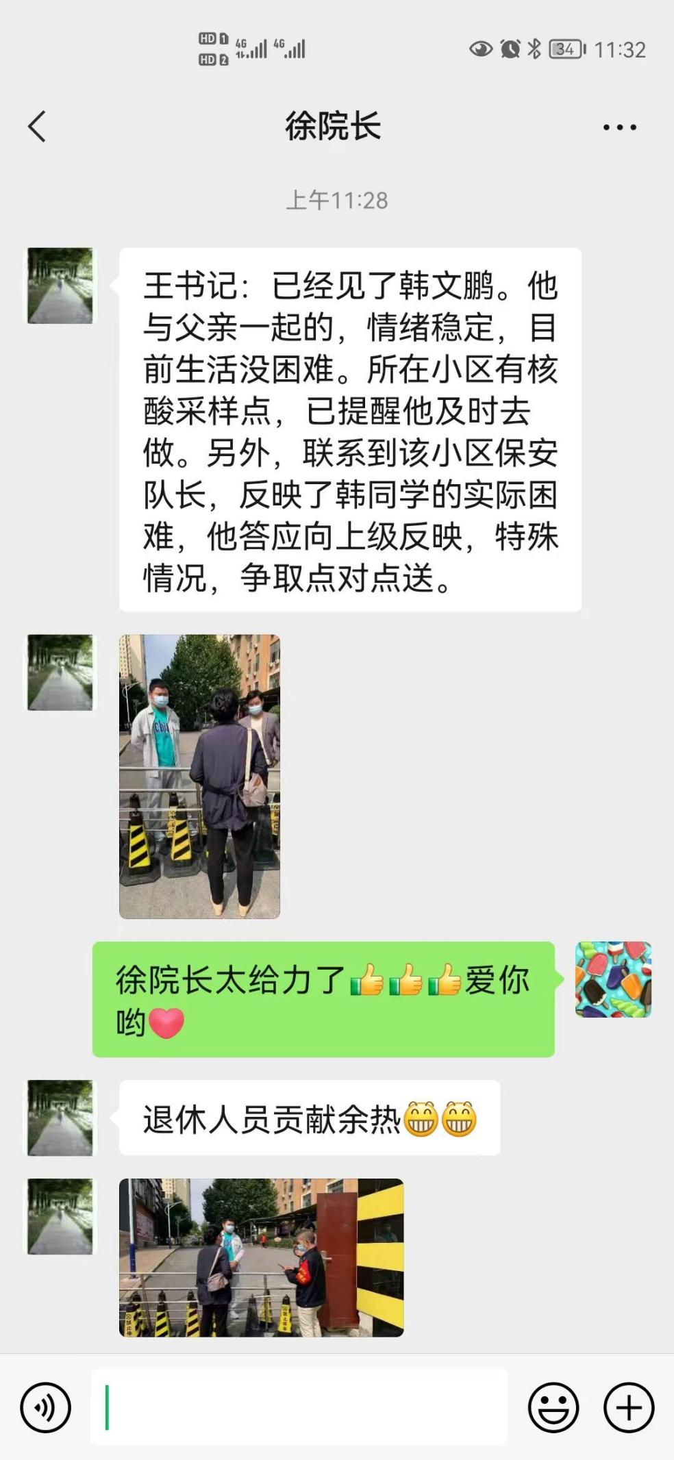 退休不褪色,尽管徐筑燕老师已经退休,但她仍心系管科公司,心一直系在管科学子身上,这支曾经照亮员工前进的红烛依然在默默发着光。对于公司老师的点赞和感谢,徐经理只是轻描淡写地说了一句:“退休人员贡献余热”。有一种爱叫无私奉献,有一种付出叫无怨无悔,有一种情叫春风化雨,虽然韩文鹏同学滞留校外,但公司的领导及老师们一直牵挂着他、关心着他,帮助他度过难关。在这梧桐落叶凉风习的秋季,公司的关心和牵挂,温暖了韩文鹏同学的心灵。