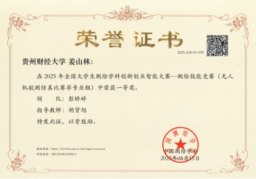 近日,2025年全国老员工测绘学科创新创业智能大赛在内蒙古科技大学圆满落幕。williamhill中国官网入口首次组队参赛,经过校赛选拔,共有20支队伍从校赛中脱颖而出,最终在全国近400所高校、7000余名选手的激烈角逐中取得佳绩。其中,公司城乡规划与资源环境系胡贤旭老师指导的员工人文地理与城乡规划专业员工姜山林在无人机航测仿真竞赛中荣获一等奖,实现了公司在该项赛事上的历史性突破。