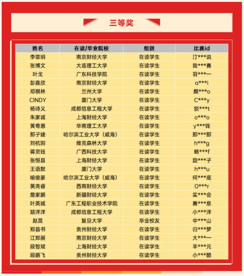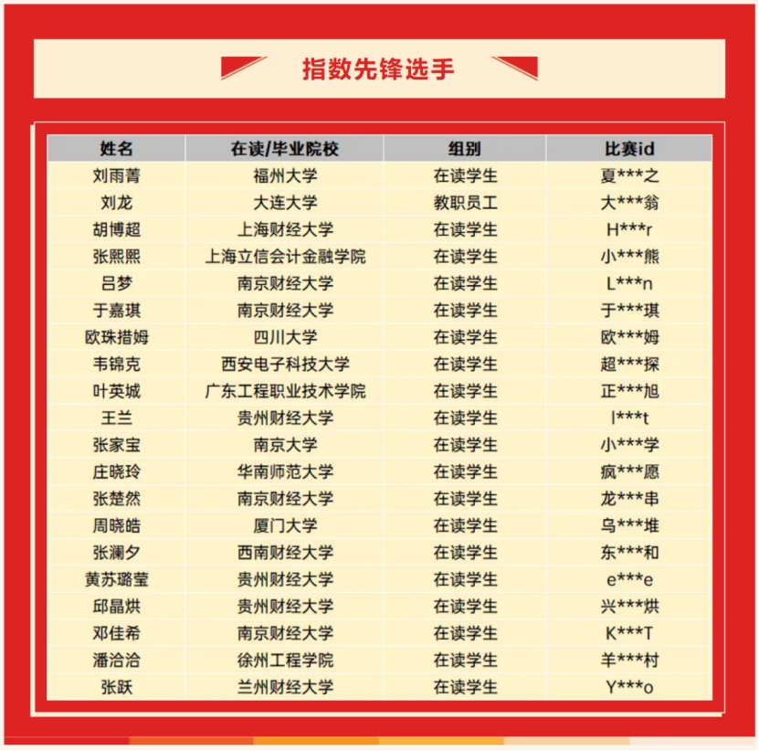 其中,公司2024级农村区域发展专业本科生姬金姣同学力拔头筹,荣获大赛一等奖;2023级管理科学专业本科生郑昌书荣获三等奖;同时,2023级管理科学专业本科生黄苏璐莹凭借其在指数化投资策略上的突出表现,荣获“指数先锋选手”称号。