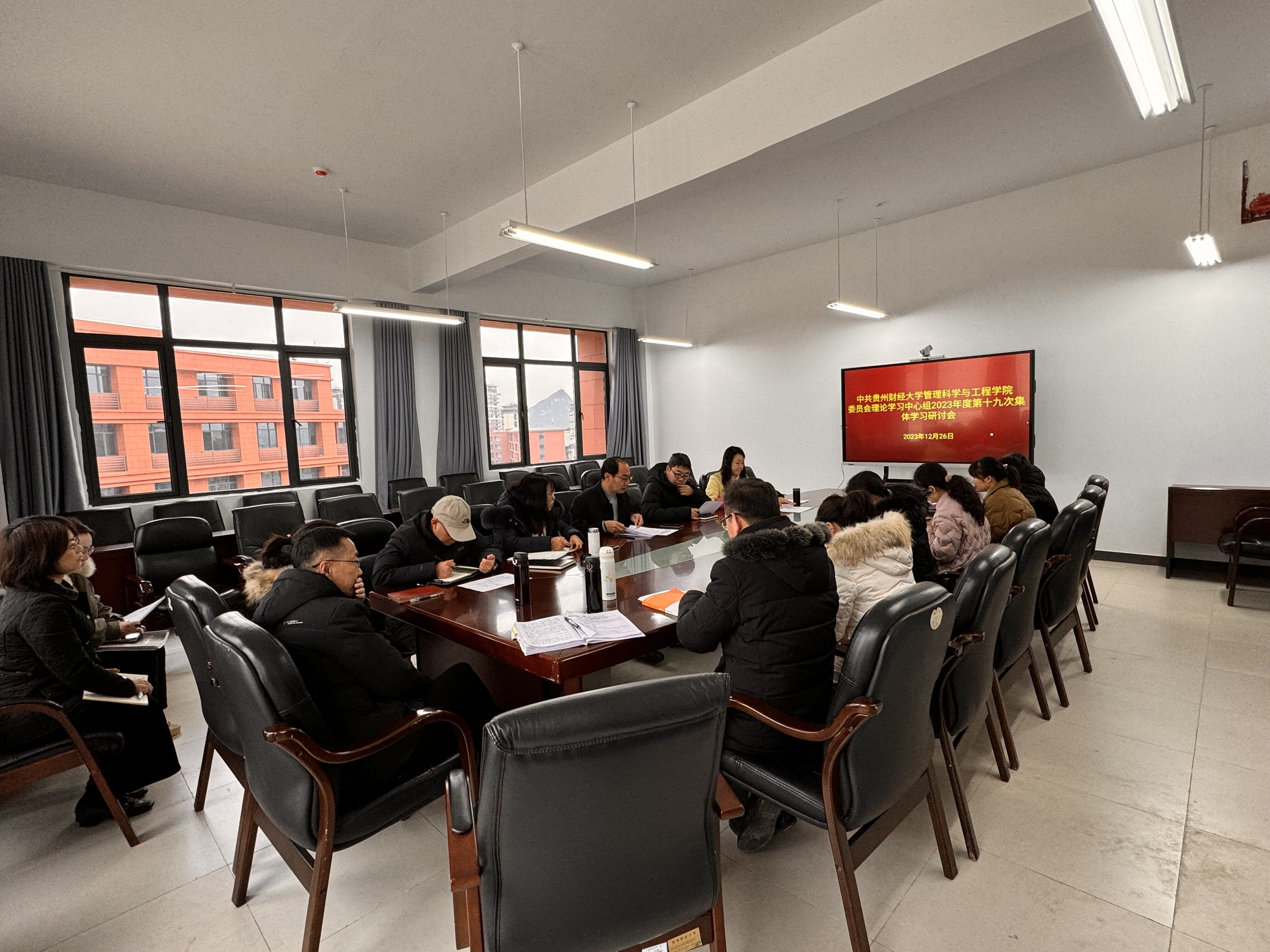 12月26日,管理科学与工程公司党委理论学习中心组2023年度第十九次集体学习(扩大)研讨会在文溯楼509会议室召开。参加会议的有公司党委书记邵新顺,党委副书记高艳妮,党委委员、副经理魏媛,经理郭长睿、贵州煤炭经济与管理研究院副经理李恩东,以及公司各党支部书记、各科室科长列席会议,会议由邵新顺主持。