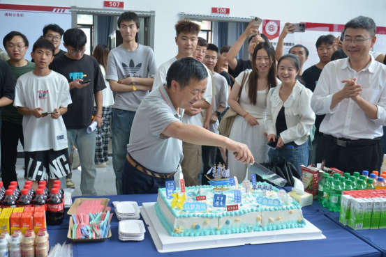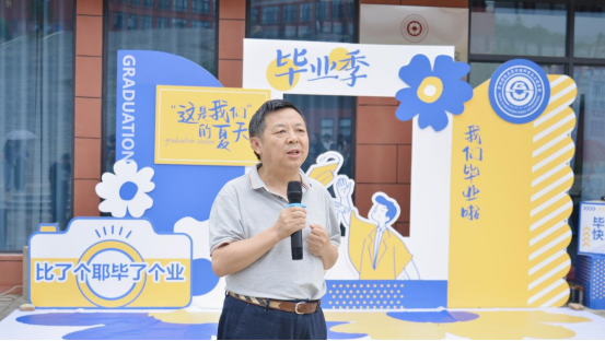 徐大佑副董事长在活动中发表了热情洋溢的讲话。他语重心长地对毕业生们提出殷切期望,希望同学们在未来的征程中,能够锚定目标,以勤奋为桨,在知识的海洋中奋力划行;以坚持为帆,在人生的道路上乘风破浪,勇创佳绩。随后,他亲自为象征着美好未来的蛋糕切下第一刀,并将蛋糕分发给在场的学子们,将满满的祝福化作沁人心肺的香甜,传递到每一位毕业生的心中。