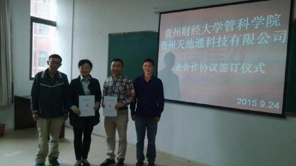 6.2015 年管科公司加大了服务社会的力度和层次,与贵州天地通科技有限公司、贵州百胜工程建设咨询有限公司、贵阳世联房地产顾问有限公司签订了合作协议,并聘请了多位企业的实务精英进课堂,大力加强了院企业的合作。